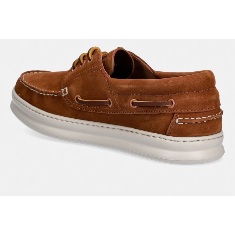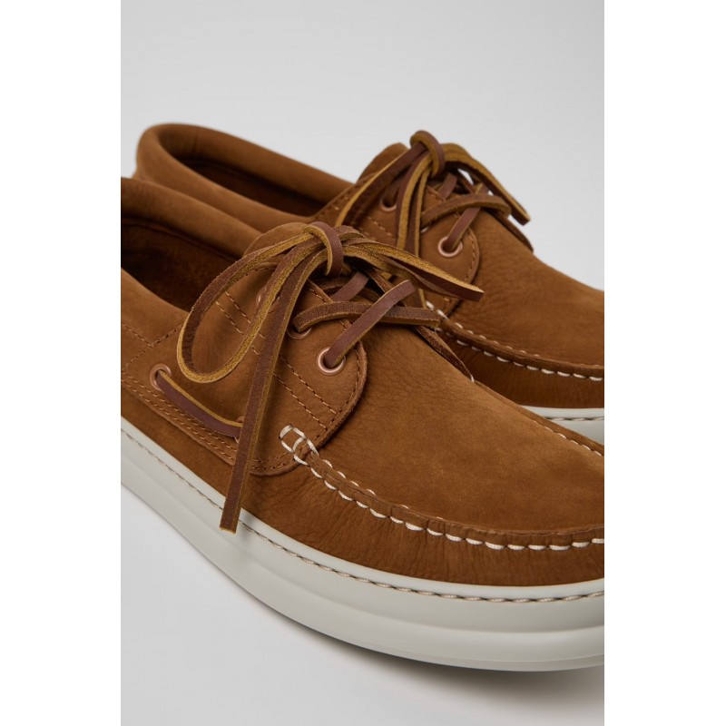 Καφέ ανδρικά μοκασίνια σε ναυτικό στιλ από δέρμα μοσχαριού νουμπούκ με μη αφαιρούμενους πάτους OrthoLite® Recycled™ και εξωτερικές σόλες EVA XL EXTRALIGHT®.