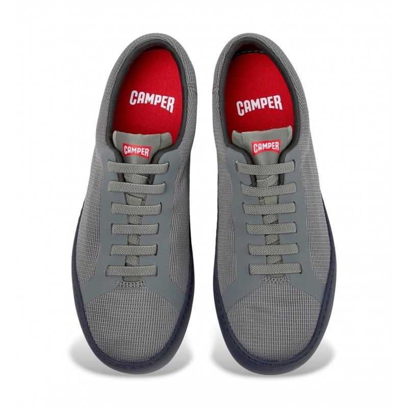 Γκρι ανδρικά καθημερινά παπούτσια από δέρμα μοσχαριού και ανακυκλωμένα τεχνικά υλικά με αφαιρούμενους πάτους OrthoLite® Recycled™, ελαστικά κορδόνια και εξωτερικές σόλες EVA (20% ανακυκλωμένο).